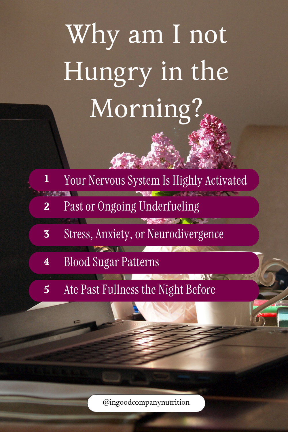 Not feeling hungry can be a common occurrence, especially for people who experience neurodiversity, chronic stress or anxiety, or a history of dieting or underfueling. However, not feeling hungry does not automatically mean your body does not benefit from eating in the morning. Hunger cues can be delayed, muted, or hard to recognize, particularly after long periods of ignoring or overriding them.